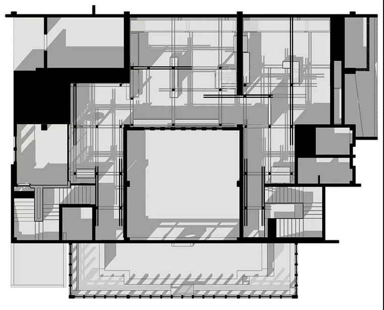 材質(zhì),往往賦予空間質(zhì)感與情緒表達。多維化內容呈現,在不同時(shí)段,伴隨著(zhù)人群、光線(xiàn)、甚至空間中氣息的變化,讓其整體充滿(mǎn)了流動(dòng)之美。結構層次的陣列排布,乍看之下冷峻而秩序井然。深灰色水磨石的存在烘托出空間的古典氣質(zhì),其走勢亦于無(wú)聲處引導著(zhù)觀(guān)者情緒與步伐。
