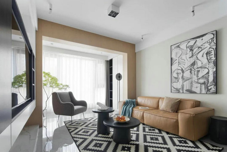 普佩斯淺灰大理石瓷磚以通透明亮的質(zhì)感和高雅的花色賦予空間柔和的輕盈感,簡(jiǎn)約背景墻與紋飾繁復的地毯及藝術(shù)畫(huà)交相輝映,簡(jiǎn)繁得當,令客廳空間擁有舒適的視覺(jué)張力。