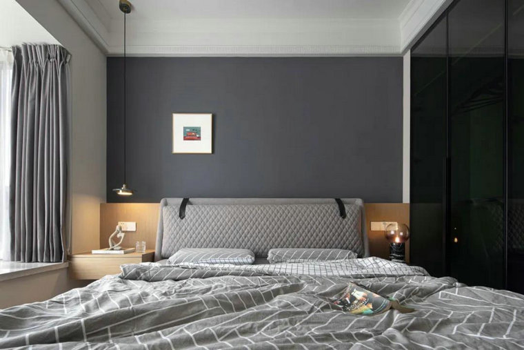 設計師主張回歸純粹本質(zhì),因而臥室呈現舒適自在的氛圍。暖木色與高級灰仍是主色調,淡化喧囂雜念,讓人回歸真實(shí)的愜意心境。柔和的線(xiàn)條,勾勒慵懶的高級感。